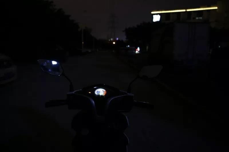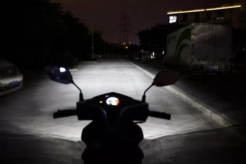 大灯的照明效果,白色LED灯源的亮度很理想,能较好的满足夜间骑行,后期几乎可以不用升级。因为远近光同亮的设计,使得远近光效果差距不是很大。